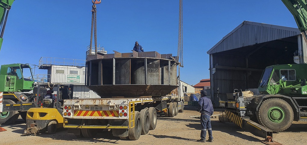 At the end of 2022, Air Blow Fans was tasked with a challenging project: to supply, install, and commission two 4.8 metre diameter, 1100 kW centrifugal fans for a coal mine in Mpumalanga, along with accompanying equipment. Each fan was designed to supply 300 m3/s of air at a pressure of 2.85 kPa. The additional equipment supplied and installed included two motor houses, fan casings, radial vane controls, self-closing doors, drift work, and a bifurcated 7,1m shaft top bend.